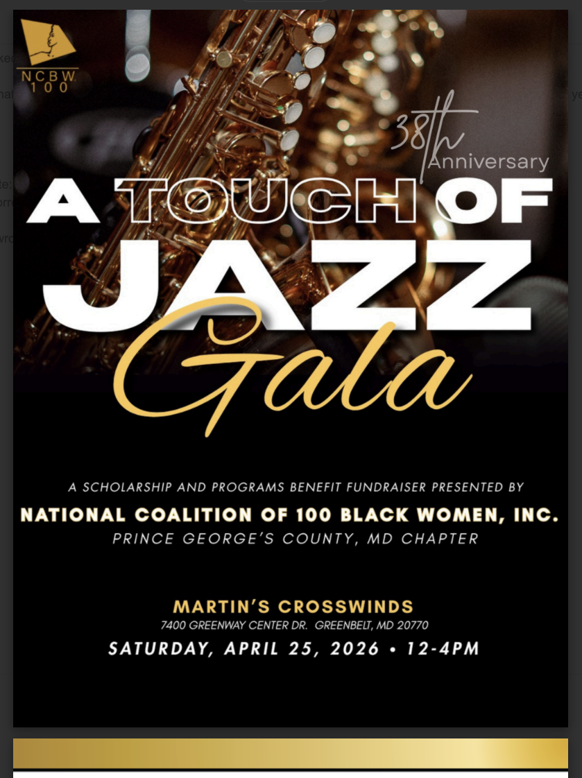 We cordially invite you to join us in celebrating our 38th Anniversary Jazz Scholarship and Programs Fundraiser, featuring an afternoon of “A Touch of Jazz,” on Saturday, April 25, 2026, at 12:00 p.m., at Martin’s Crosswinds in Greenbelt, Maryland. We are delighted to announce that Marissa Mitchell, esteemed host of Fox 5 News and Good Day DC, will serve as the Mistress of Ceremony for our Jazz Fundraiser.
