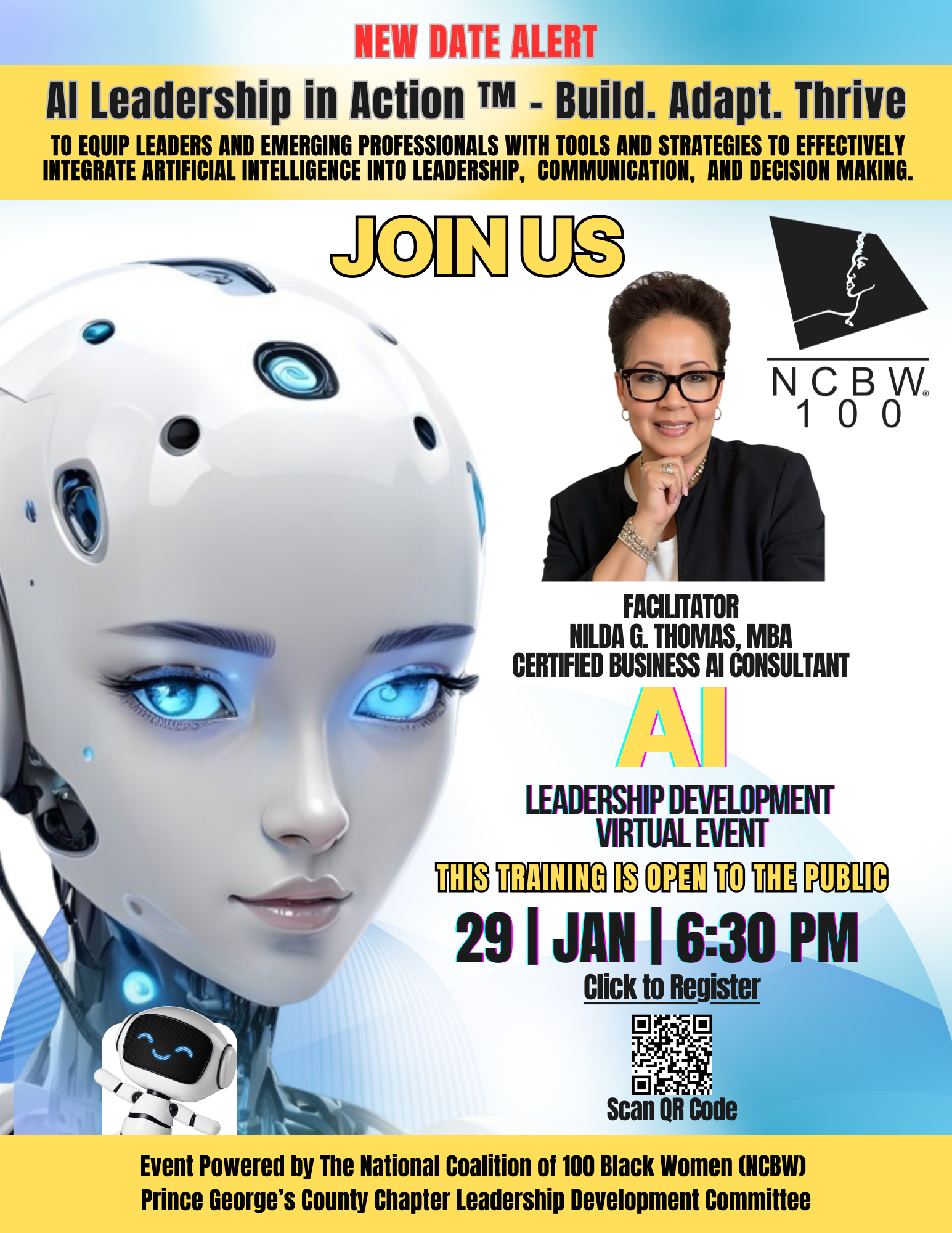 This training is designed to equip leaders and emerging professionals with tools and strategies to effectively integrate artificial intelligence into leadership, communication, and decision-making practices. Leading the training is Nilda G. Thomas, MBA, CEC, CEA, Certified AI Consultant and the Founder of Business AI Consulting.