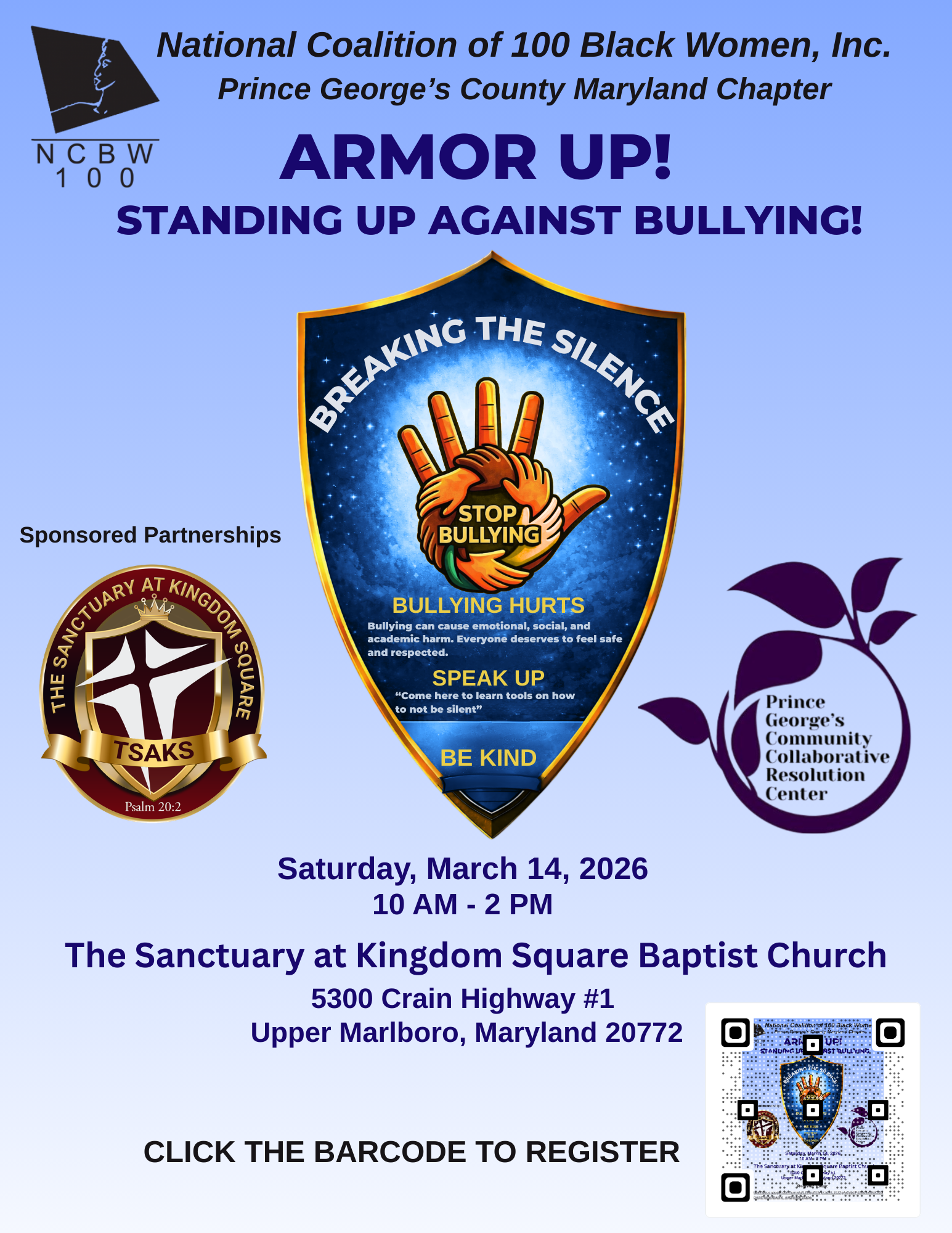 Please Scan the QR Code on the Flyer to Register for "ARMOUR UP!" Breaking the Silence of Bullying!